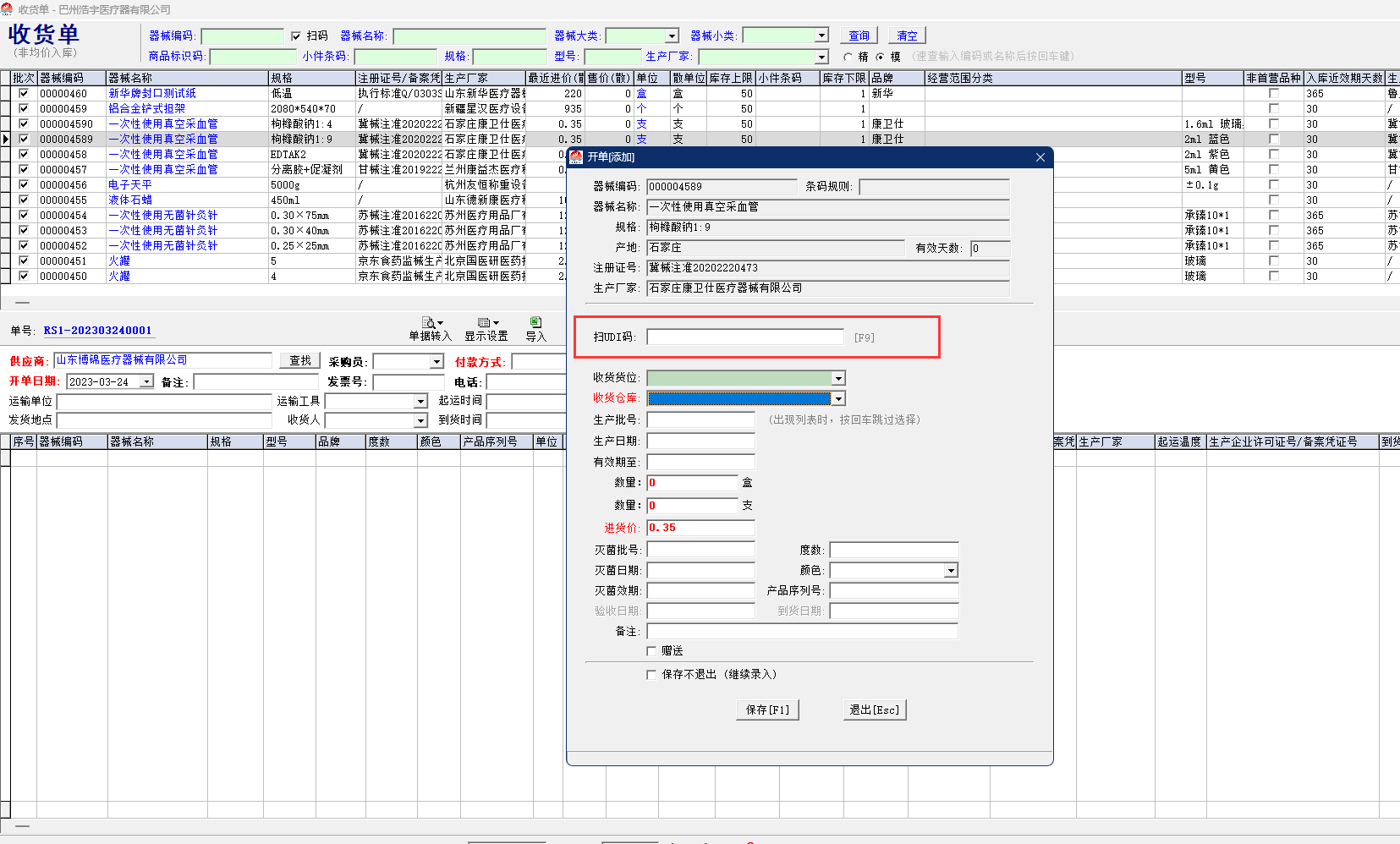 三类器械经营许可证办理时验收用的管理软件,必须有的udi功能,如图示,没有此功能,药监验收不过的